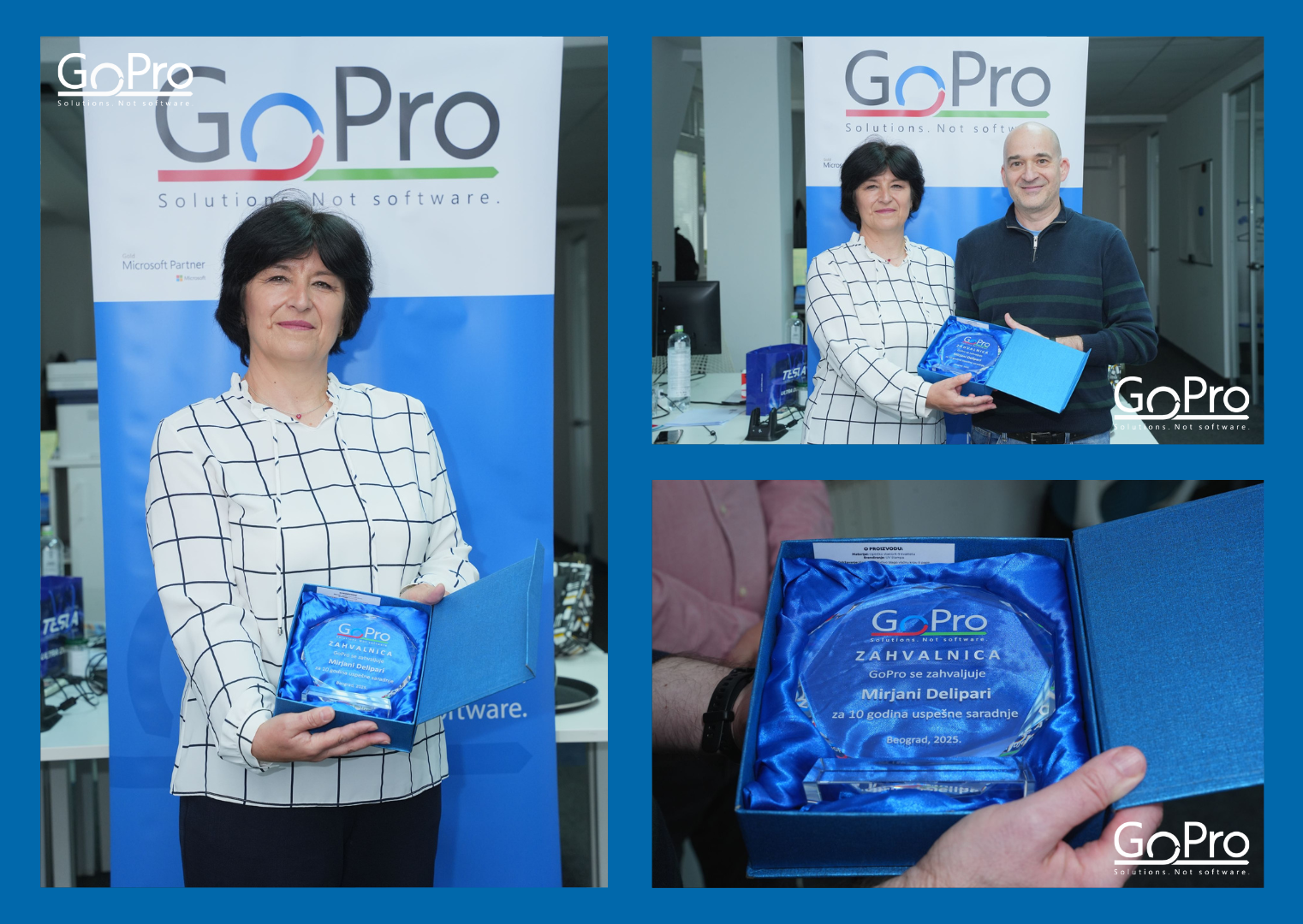 Pre nje, ovu važnu prekretnicu u GoPro-u su obeležili Biljana Rakić, Jelena Živković, Biljana Milijić, Marko Andrić, Ljiljana Jevtić, Mirjana Šobotović Radović i Branko Radović. Danas sa ponosom dodajemo i Mirino ime na tu listu, jer deset godina posvećenosti i predanog rada zaista zaslužuju da budu prepoznati i proslavljeni.